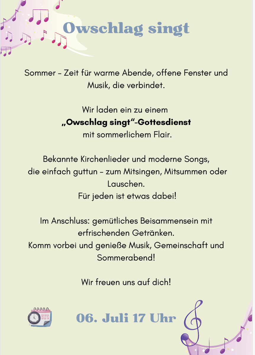 Bekannte Kirchenlieder und moderne Songs, die einfach guttun – zum Mitsingen, Mitsummen oderLauschen. Für jeden ist etwas dabei!